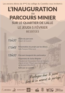 Par Mathieu Chamboredon, publié le mardi 20 janvier 2026 15:41 - Mis à jour le mardi 20 janvier 2026 15:47Les anciens élèves de 4°2 du collège de Bessèges vous invitent jeudi 5 février à l’inauguration du parcours qu’ils ont réalisé sur le patrimoine minier du quartier de Lalle. -